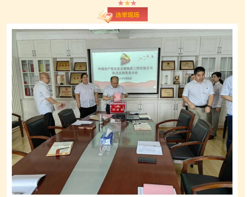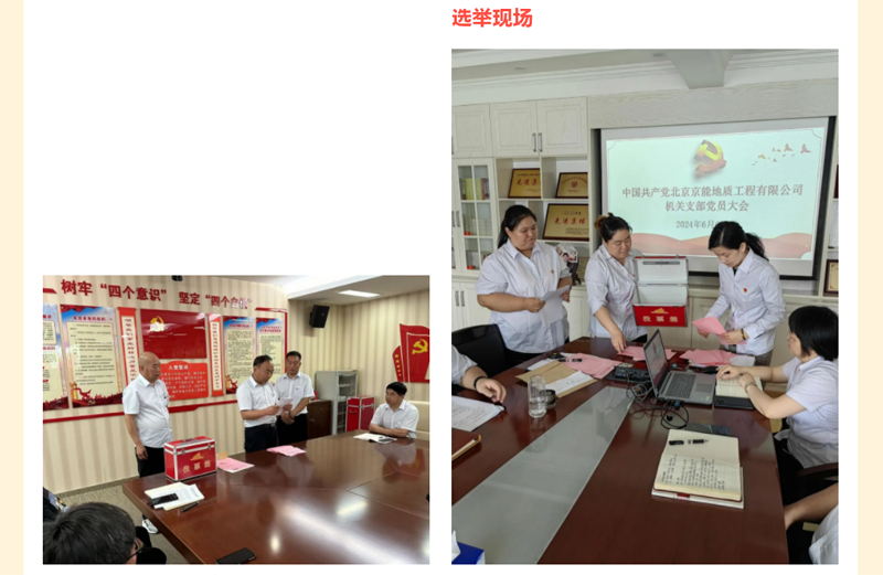 依據(jù)《中國(guó)共產(chǎn)黨章程》《中國(guó)共產(chǎn)黨基層組織選舉工作暫行條例》的有關(guān)規(guī)定和京能建設(shè)黨委同意支部換屆批復(fù)中的相關(guān)要求,6月6日,7日,京能地質(zhì)所屬機(jī)關(guān)黨支部、后勤保障黨支部、項(xiàng)目部黨支部分別召開(kāi)了黨員大會(huì),選舉產(chǎn)生了新一屆委員會(huì),圓滿(mǎn)完成了黨支部換屆選舉工作。