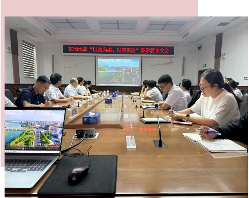 為深入學習習近平總書記關(guān)于加強黨的紀律建設(shè)的重要論述,貫徹落實市委、市國資委、京能集團、京能地產(chǎn)平臺和京能建設(shè)集團黨委警示教育大會精神,鞏固黨紀學習教育成果,持續(xù)深入開展紀法教育,促進黨員干部知敬畏、存戒懼、守底線。2024年9月10日,北京京能地質(zhì)工程有限公司召開“以案為鑒、以案促改”警示教育大會。京能地質(zhì)領(lǐng)導班子成員、總經(jīng)理助理、所屬各黨支部委員、部門負責人、重點崗位人員參加會議,京能建設(shè)集團紀檢室、黨群工作部人員到會指導。會議由京能地質(zhì)黨總支副書記、總經(jīng)理周二友同志主持。